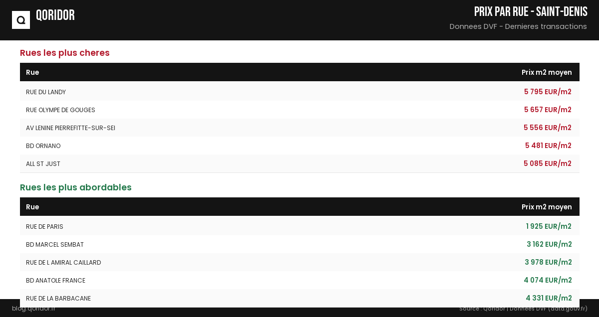 Prix au m² par rue à Saint-Denis