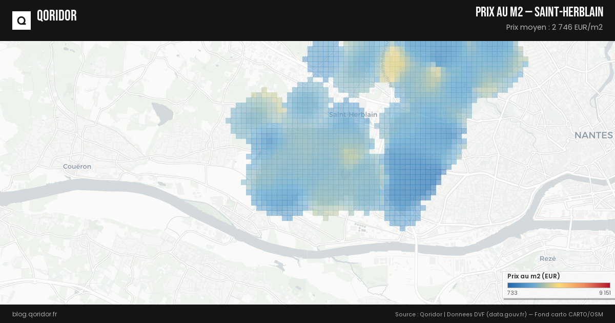 Le prix moyen au m² à Saint-Herblain est calculé à partir des transactions immobilières enregistrées (données DVF). Consultez nos données mises à jour automatiquement pour connaître le prix actuel.