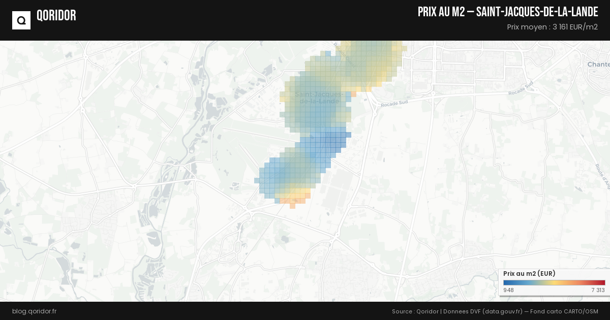 Le prix moyen au m² à Saint-Jacques-de-la-Lande est calculé à partir des transactions immobilières enregistrées (données DVF). Consultez nos données mises à jour automatiquement pour connaître le prix actuel.
