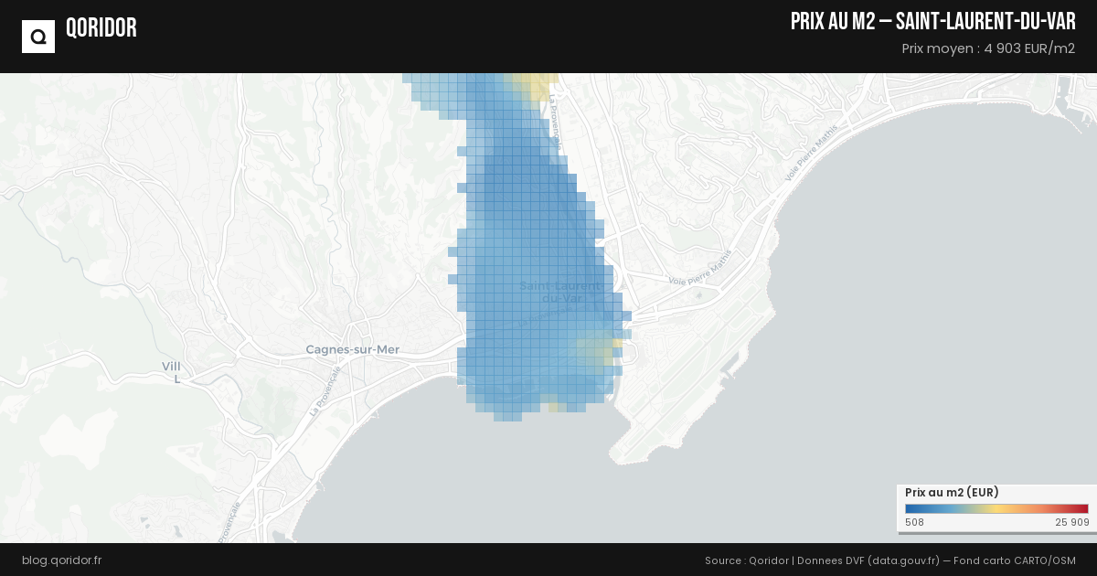 Le prix moyen au m² à Saint-Laurent-du-Var est calculé à partir des transactions immobilières enregistrées (données DVF). Consultez nos données mises à jour automatiquement pour connaître le prix actuel.