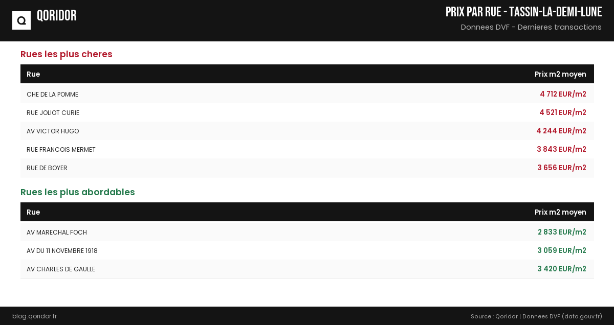 Prix au m² par rue à Tassin-la-Demi-Lune
