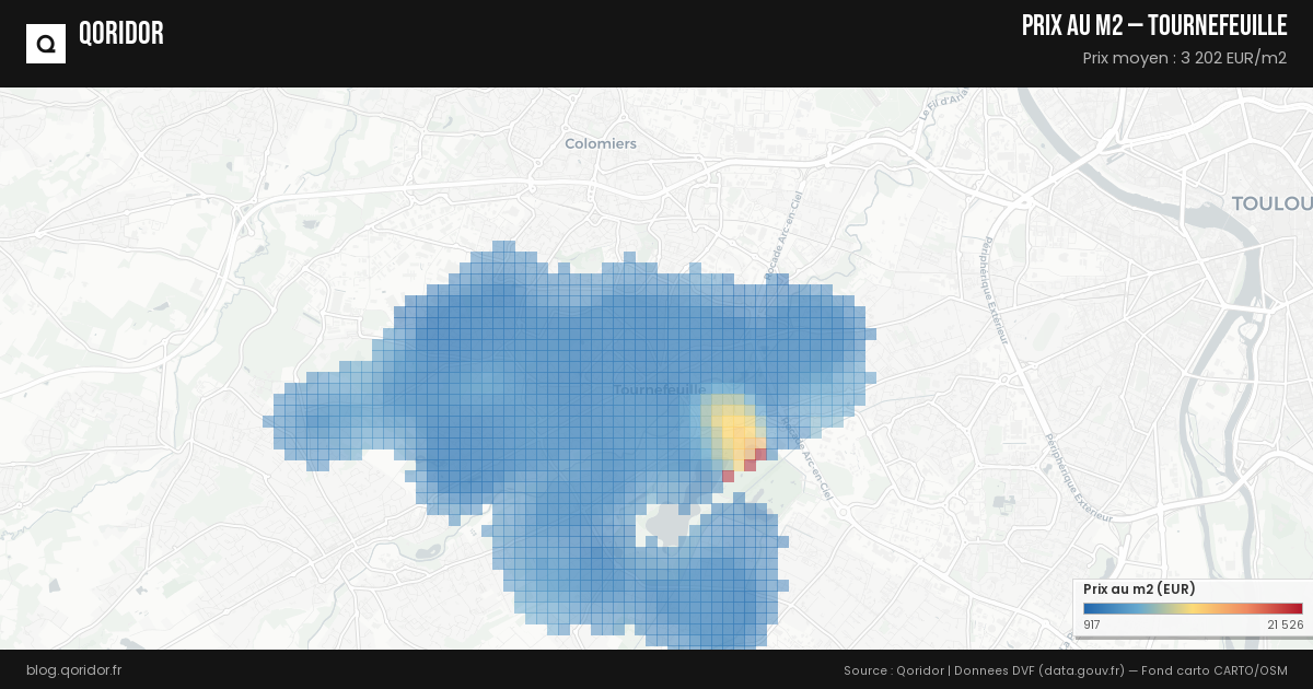 Le prix moyen au m² à Tournefeuille est calculé à partir des transactions immobilières enregistrées (données DVF). Consultez nos données mises à jour automatiquement pour connaître le prix actuel.