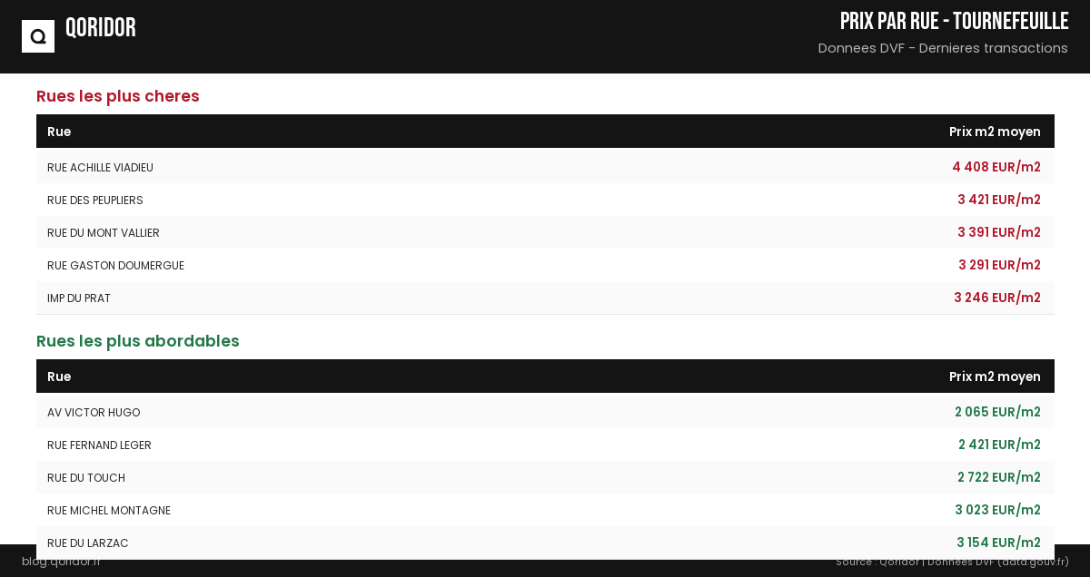 Prix au m² par rue à Tournefeuille