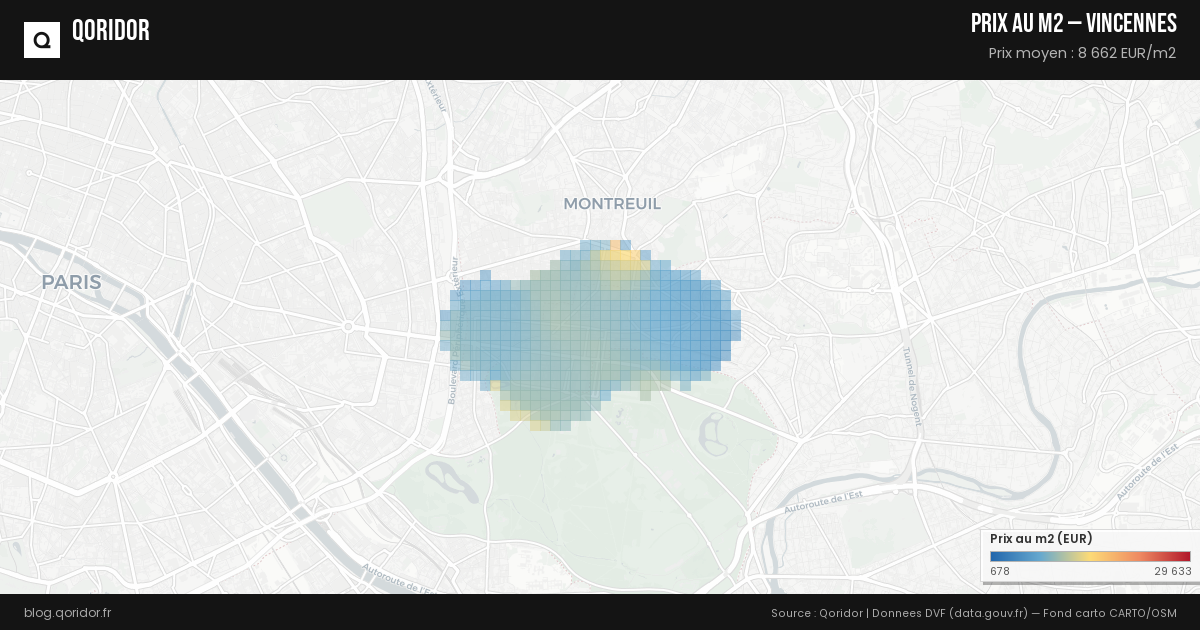 Le prix moyen au m² à Vincennes est calculé à partir des transactions immobilières enregistrées (données DVF). Consultez nos données mises à jour automatiquement pour connaître le prix actuel.